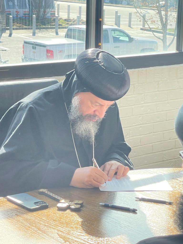 وقع المطران الانبا يوسف مطران جنوبى امريكا على عقد شراء ارض جديدة لكنيسة القديس يوحنا بسميرنا . وموقع اقباط امريكا…